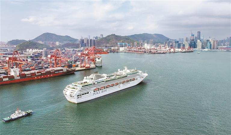 蛇口邮轮母港开港至今共接待游客3308万人次,图为“太平洋世界”号邮轮抵深。