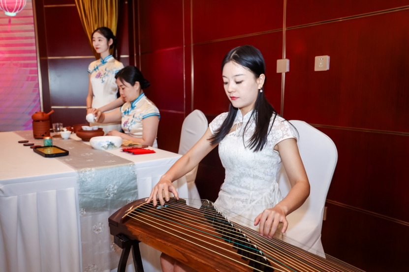 雅集现场,中外嘉宾欣赏了世界级非物质文化遗产潮州功夫茶的表演,品尝华彩名章、凤凰单丛等中国名茶。