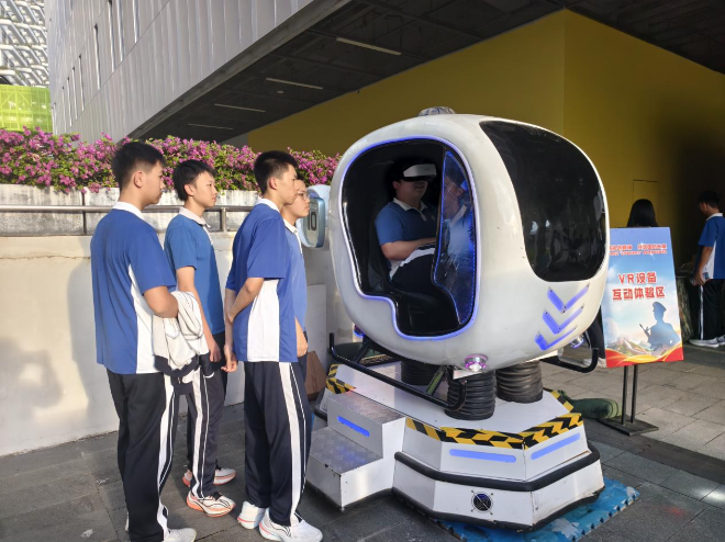 “以前觉得国防离我们很遥远,但通过这次活动,亲手操作模拟器、用VR看装备、还能自己动手做模型,感觉特别震撼!我更加明白了‘国无防不立’的道理,也对我们国家的强大军队感到无比自豪。”一位现场参与活动的学子兴奋地分享了他的感受。