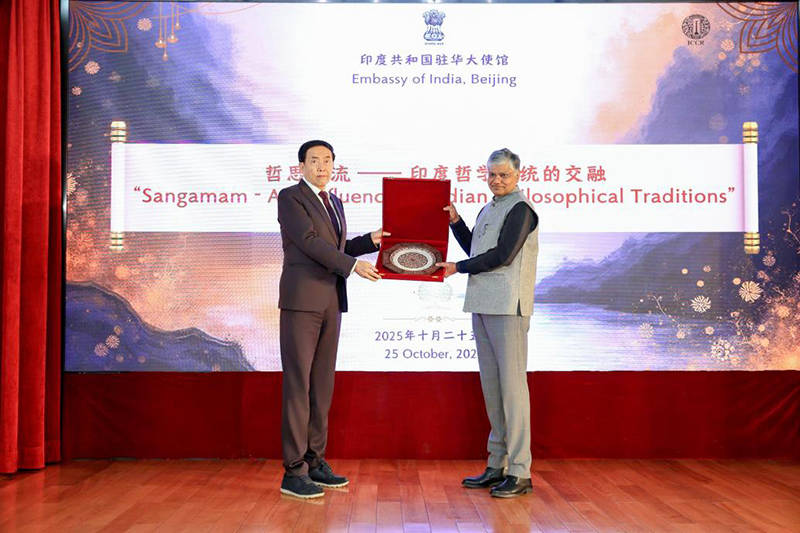 在全场嘉宾的见证下,袁熙坤与罗国栋大使共同为雕塑揭幕。这座青铜塑像不仅成为印度驻华使馆的新人文景观,更化作一座浓缩的“文明桥梁”,承载着两国人民对和平的向往与对友谊的珍视,为推动中印关系健康稳定发展注入文化力量 。