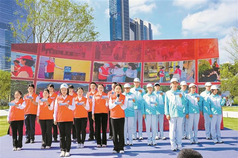 伴随着响亮的倡议声,深圳市垃圾分类志愿服务总队代表关媛苑与10名赛会志愿者代表、10名城市志愿者代表齐声宣誓,以“绿色誓师”的形式吹响垃圾分类志愿服务的号角,号召全城赛会志愿者和城市志愿者行动起来,为十五运会和残特奥会做好赛事服务和保障。