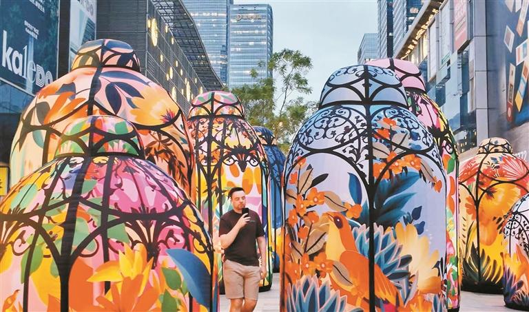 回溯前五届,深圳光影艺术季在引导商圈、企业积极参与,促进夜间经济方面发挥了重要作用。据统计,五届累计落地19个国家近1100件光影艺术作品,举办主题活动近350场,走进福田节日大道、深业上城等处,活动商圈总营业额超250亿元。