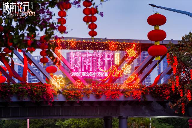 记者从南山区城市管理和综合执法局了解到,2026年南山区“城南花开”花事活动结合“马年”主题与各会场特色,精心布置四大光影景观。其中,荷兰花卉小镇推出光电装置《金桔花彩》《骏跃花涧福满门》《花开透明屏》;中山公园设置《骏影花斑》艺术装置,门前的天桥更是化身为年味长廊;南头古城以骏马逢城为主题,打造趣味体验的沉浸式“广东年”;深圳湾大街-深圳湾文化广场则通过《马放南山-花间憩语》《灵马送福-花满飞天》等场景,传递自然与科技交融的新春祝福。