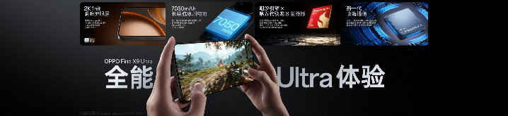 Find X9 Ultra搭载满血配置:X轴线性马达,3D超声波指纹,对称双扬声器。新一代山海通信升级,复杂场景不断连,极限环境不失联。