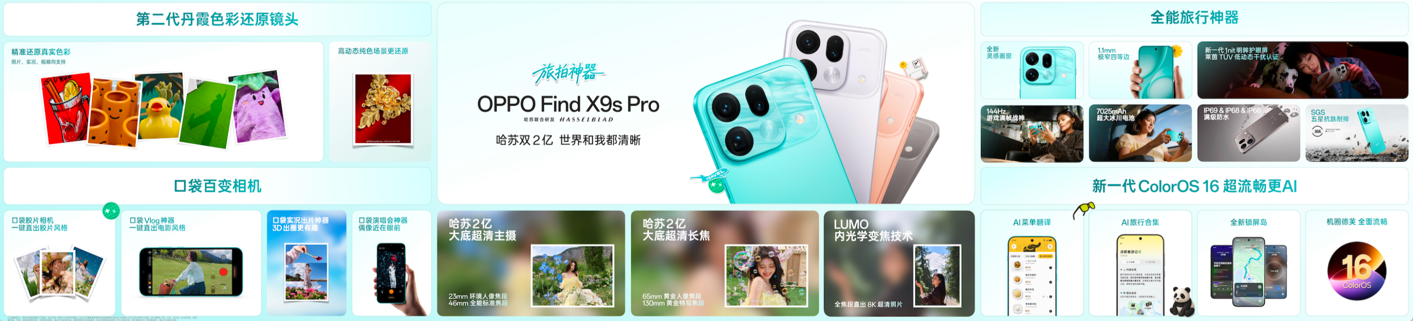 作为新一代旅拍神器,Find X9s Pro影像能力全面进阶,配备Pro档唯一哈苏2亿大底超清主摄及更强哈苏2亿大底超清长焦。哈苏双2亿镜头融合两种视角,兼容多种玩法。