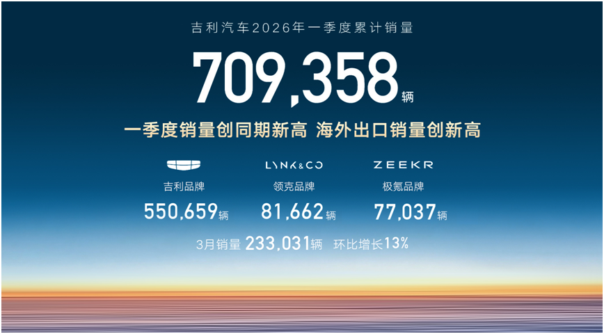数据显示,吉利2026年一季度销量709358辆,时隔五年重夺中国品牌销量冠军;中国星系2016年至2025年蝉联中国品牌燃油乘用车销量冠军(2025年销量121.41万辆);银河品牌以37个月达成200万辆累计销量,成为最快破该纪录的新能源品牌,旗下星愿车型上市536天交付超60万辆。
